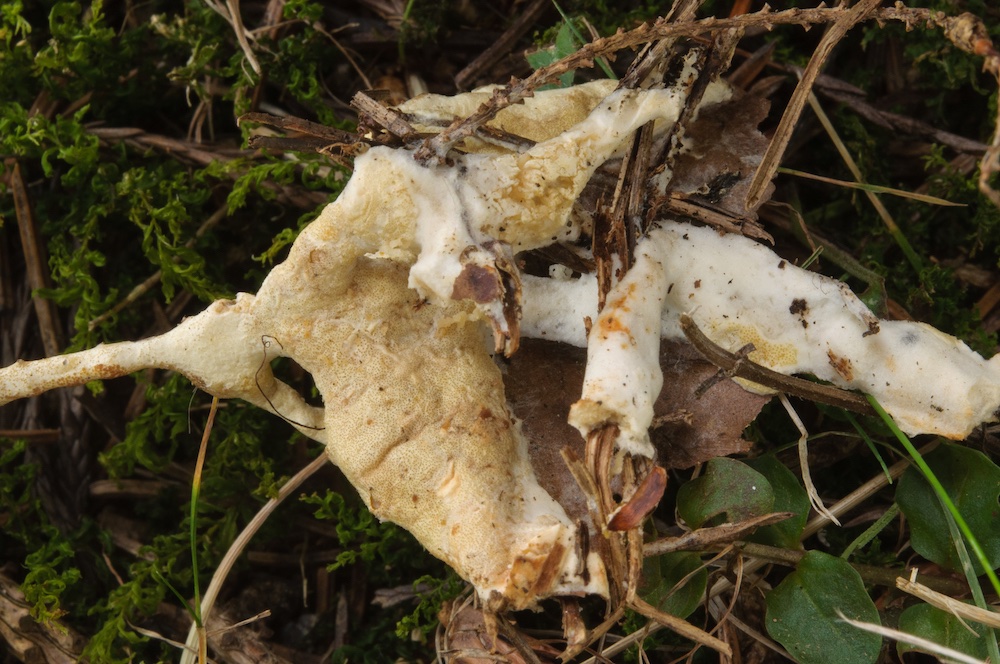 Postia floriformis: Vergrabenes Holz in Parkanlage. .
