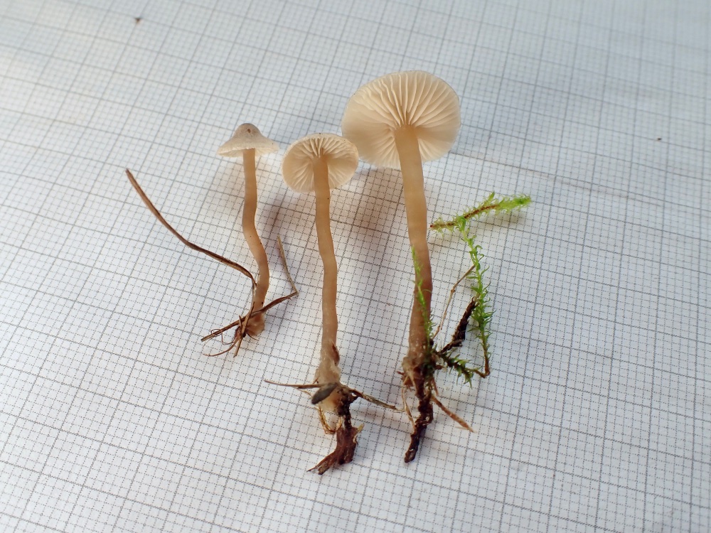 Clitopilopsos hirneola (oder eine nah verwandte Art) extensiv beweidete Wiese mit viel Moos, Waldrand