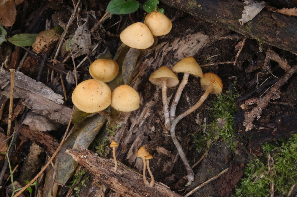 Galerina marginata: Stark vermorschtes Laubholz, wohl Salix. Wirkte für mich ungewöhnlich mit den spitzen Hüten, mikroskopisch kommt aber nichts anderes in Frage.