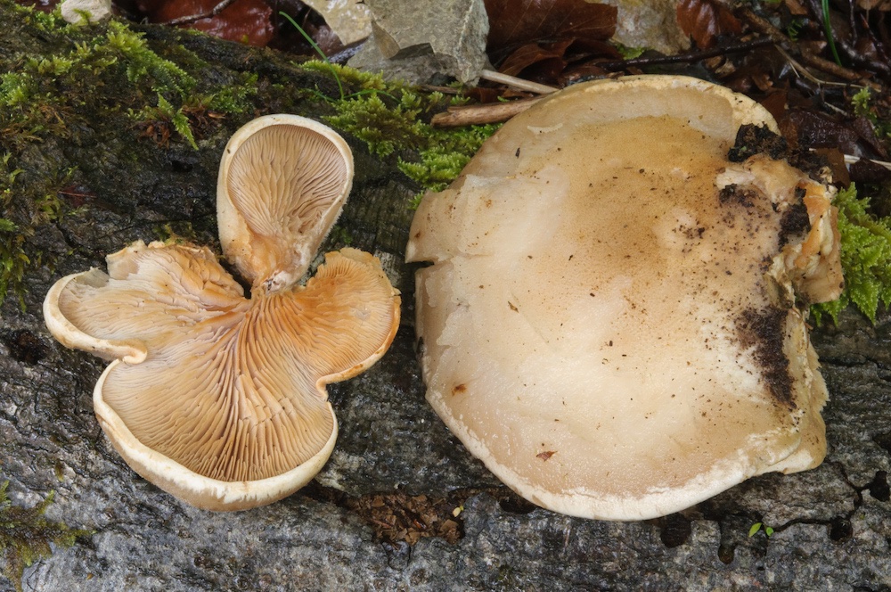 Unabhängig voneinander fanden Florian und ich einen dickfleischigen, seitlingsähnlichen Pilz mit fein behaartem Hut auf Fagus-Stämmen. Im Feld waren wir zunächst ratlos, schließlich gelang mir aber nach mikroskopischer Untersuchung die Bestimmung als Lignomyces vetlinianus. Andrej hat dies mit einem Blick auf die Fruchtkörper sofort bestätigt, denn er fand die Art letztes Jahr erstmals in Slowenien. Ein wirklich spannender Pilz, von dem es weltweit erst relativ wenige Funde gibt.