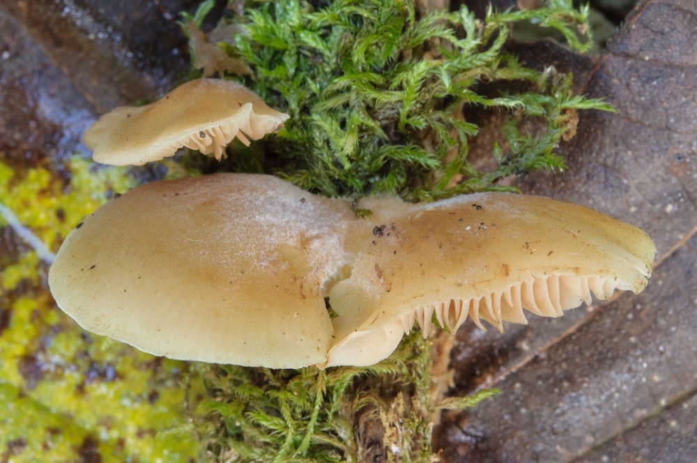Clitocybula lacerata agg.: Morsches Nadelholzstück. Früher sind solche Kollektionen teilweise als C. abundans bestimmt worden.