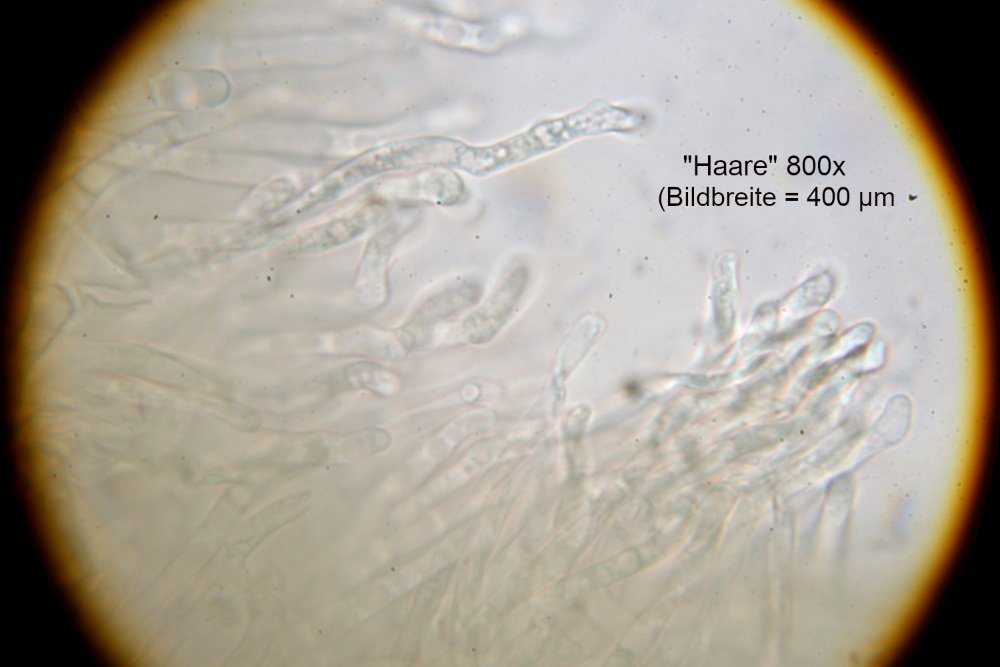 • "Haare" vom flauschigen Rand + Innenbereich mit runder Endung, wenig septiert, mit Luftbläschen?