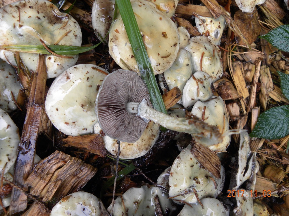 Wie Stropharia aeruginosa (Foto), Massenauftreten auf Holzschnitzel, am Standort 47.579587, 16.013728