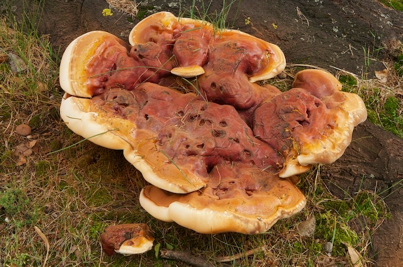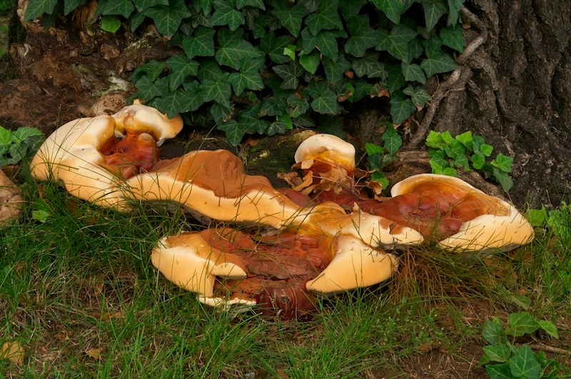 Die folgenden Porlinge hat ein Pilzfreund im Grazer Stadtgebiet entdeckt – sie wachsen an der Stammbasis einer Rot-Eiche.