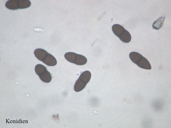 Bist du dir sicher, dass es sich bei den gezeigten Konidien um solche handelt? Könnten das nicht einfach überreife/alte Sporen sein? Konntest du Konidiophoren beobachten?