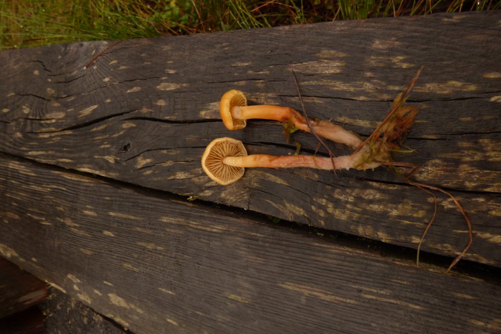 Nun zur Sache: Im Zuge eines Kärnten-Aufenthalts Ende August dieses Jahres habe ich zusammen mit Bernd ein paar seltene Pilze gesammelt, u.a. Mycena megaspora, Suillus sibiricus, Hypholoma myosotis und eben auch folgenden Pilz im Sphagnum, dessen Identität ich nicht enträtseln kann.
