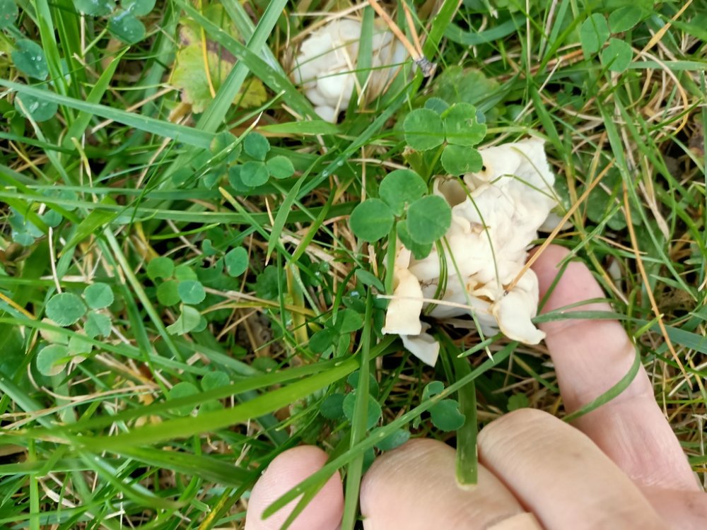 mit der Herbst-Lorchel (Helvella crispa) liegst du sicher nicht verkehrt, wobei die Abgrenzung von H. lactea schwierig ist.