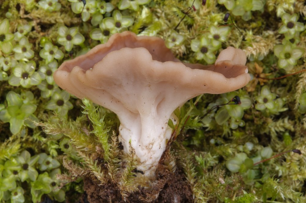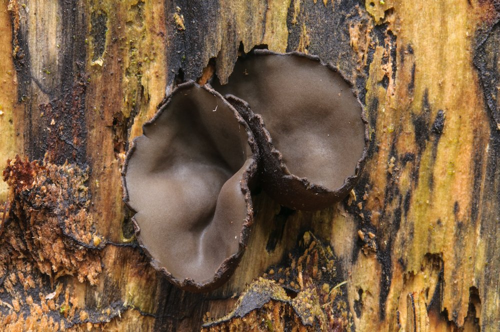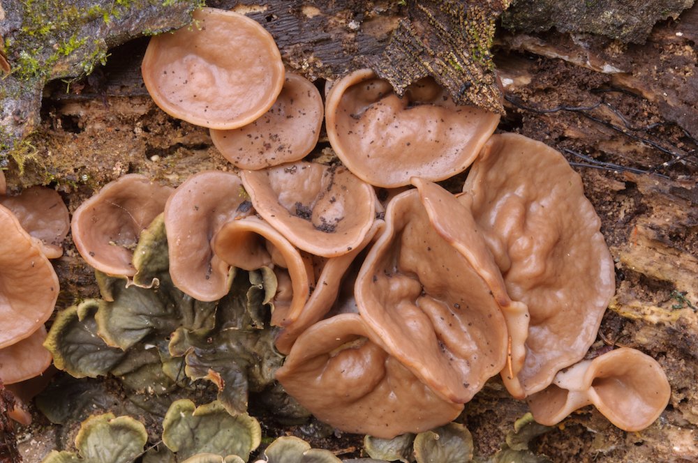 Gyromitra martinii: Liegender Carpinus-Stamm. Die Fotos zeigen dieselbe Gruppe, aufgenommen im Abstand von 20 Tagen.