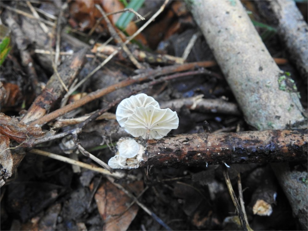 Marasmiellus tricolor, M. candidus und M. trabutii sehen sich sehr ähnlich und sollten mikroskopiert werden. Der Standort auf Laubholzästchen im Leithagebirge passt am besten auf M. candidus. Bitte versuch, diesen nächstes Jahr wiederzufinden, er ist es wert und dann trocknen fürs Fungarium.